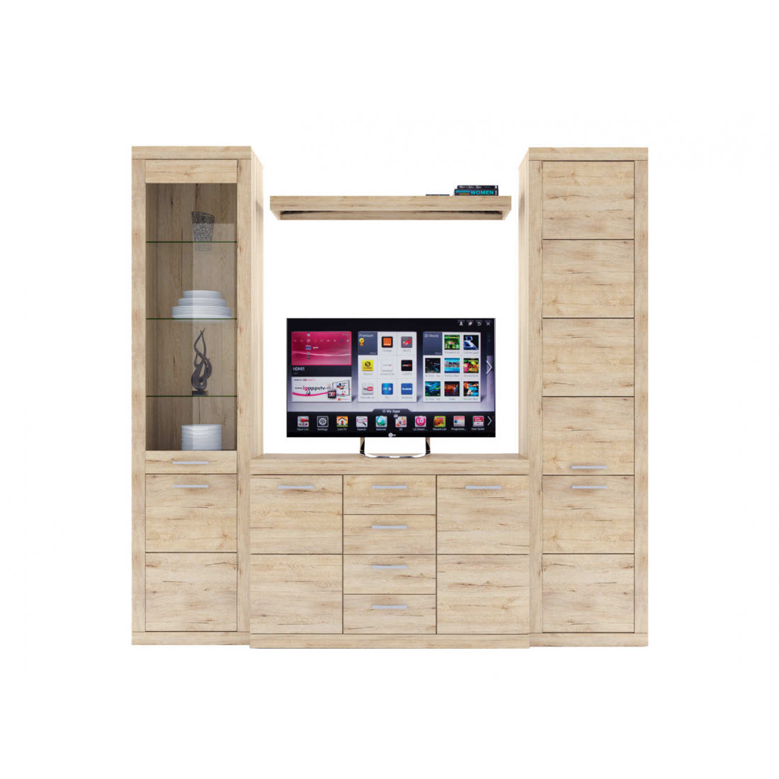 2. 4 варианта тумб RTV с выдвижными ящиками на шариковых направляющих. 2 размера надставных полок для RTV-тумб (полка TVB и полка TV), позволяющих установить выше телевизор. Варианты навесных полок, соответствующих по размеру тумбам для телевизора. Тумба RTV 2S2NL имеет глубину 351 мм, что позволяет составить модули, имеющие такую же глубину, в одну линию без выступающих элементов.